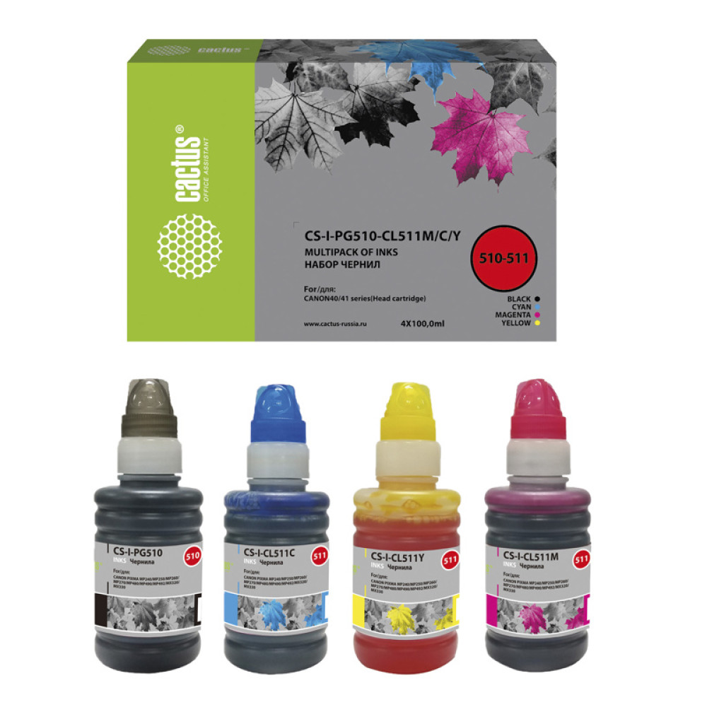 -/ Чернила Cactus CS-I-PG510-CL511M/C/Y многоцветный набор 4x100мл для Canon Pixma MP240/MP250/MP260/MP