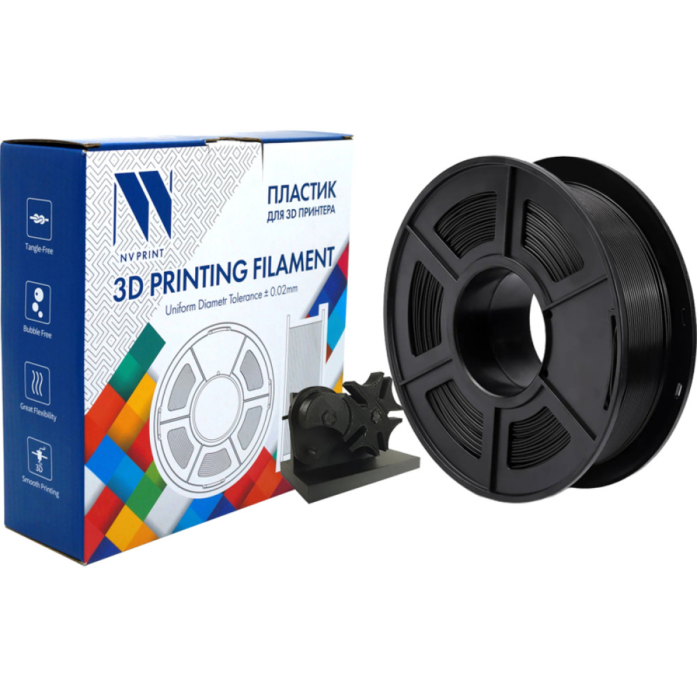 -/ Филамент NVPRINT PLA Black для 3D печати диаметр 1.75мм длина 330 метров масса 1 кг