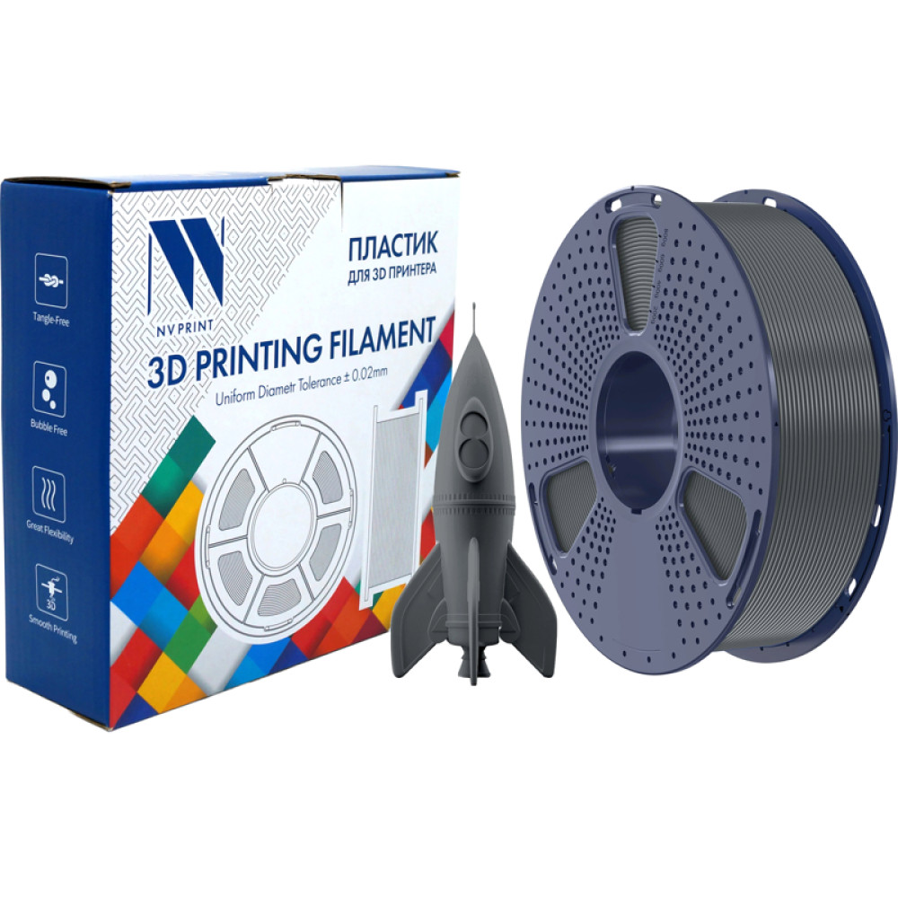 -/ Филамент NVPRINT PLA High Speed Grey для 3D печати диаметр 1.75мм длина 330 метров масса 1 кг