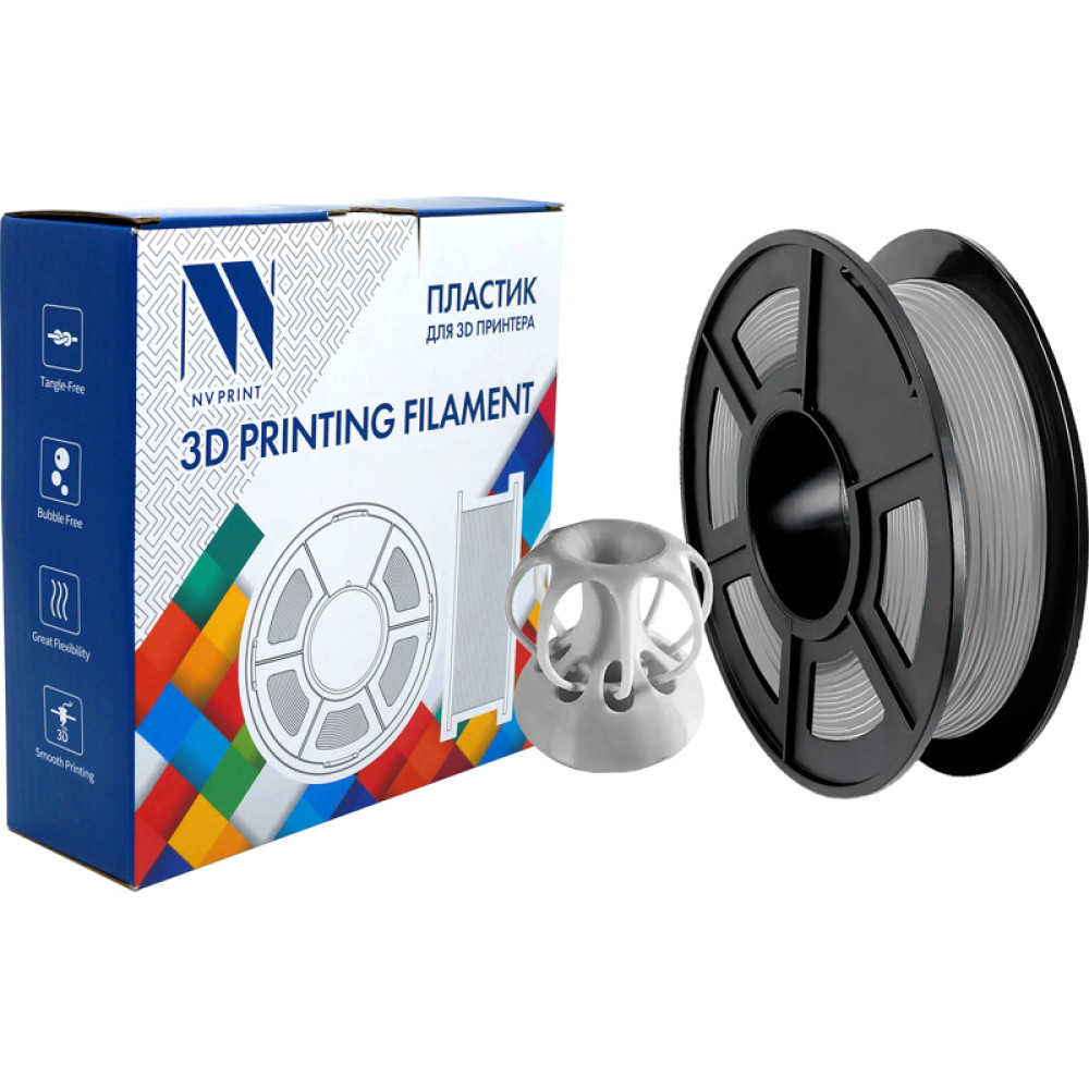 -/ Филамент NVPRINT TPU Grey для 3D печати диаметр 1.75мм длина 165 метров масса 0,5 кг