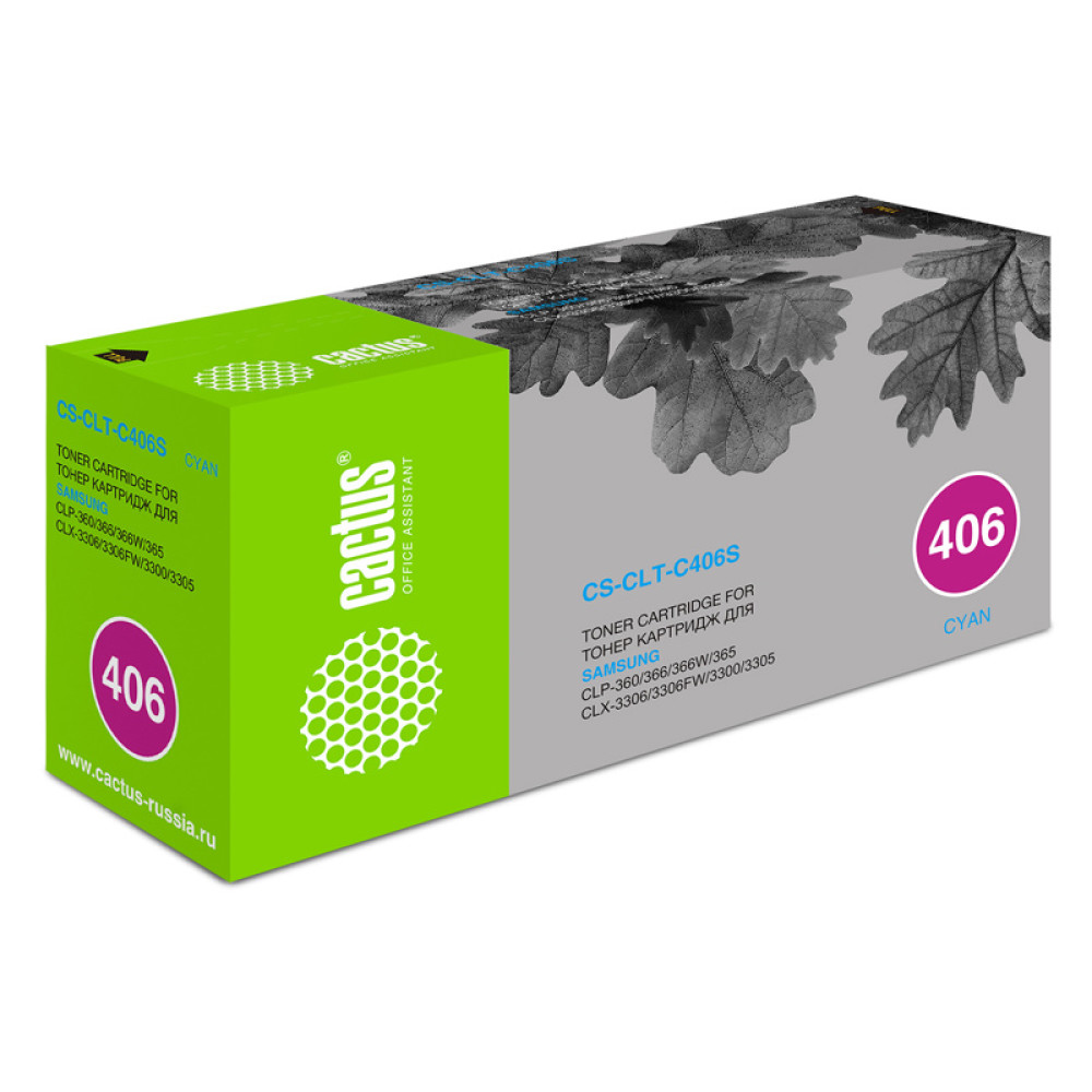 -/ Картридж лазерный Cactus CS-CLT-C406S CLT-C406S голубой (1000стр.) для Samsung CLP-360/365/CLX-3300/