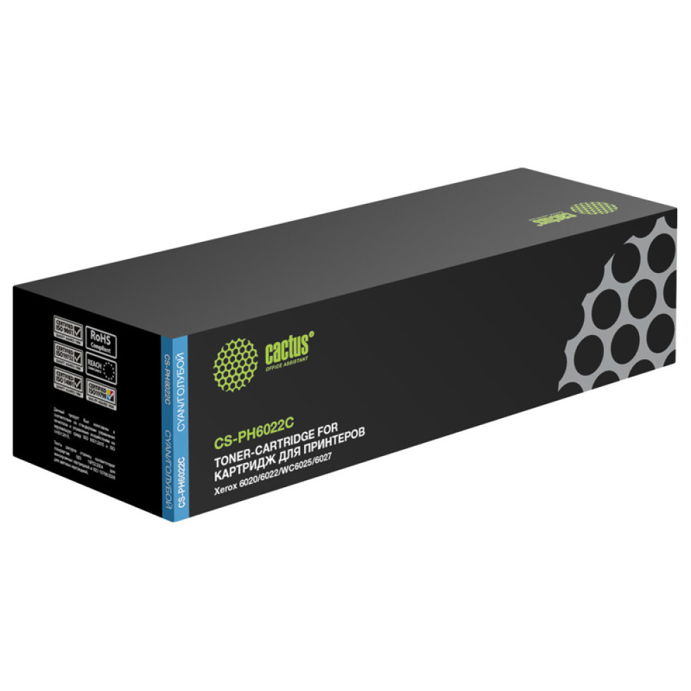 -/ Картридж лазерный Cactus CS-PH6022C 106R02760 голубой (1000стр.) для Xerox Phaser 6020/6022/WC6025/6