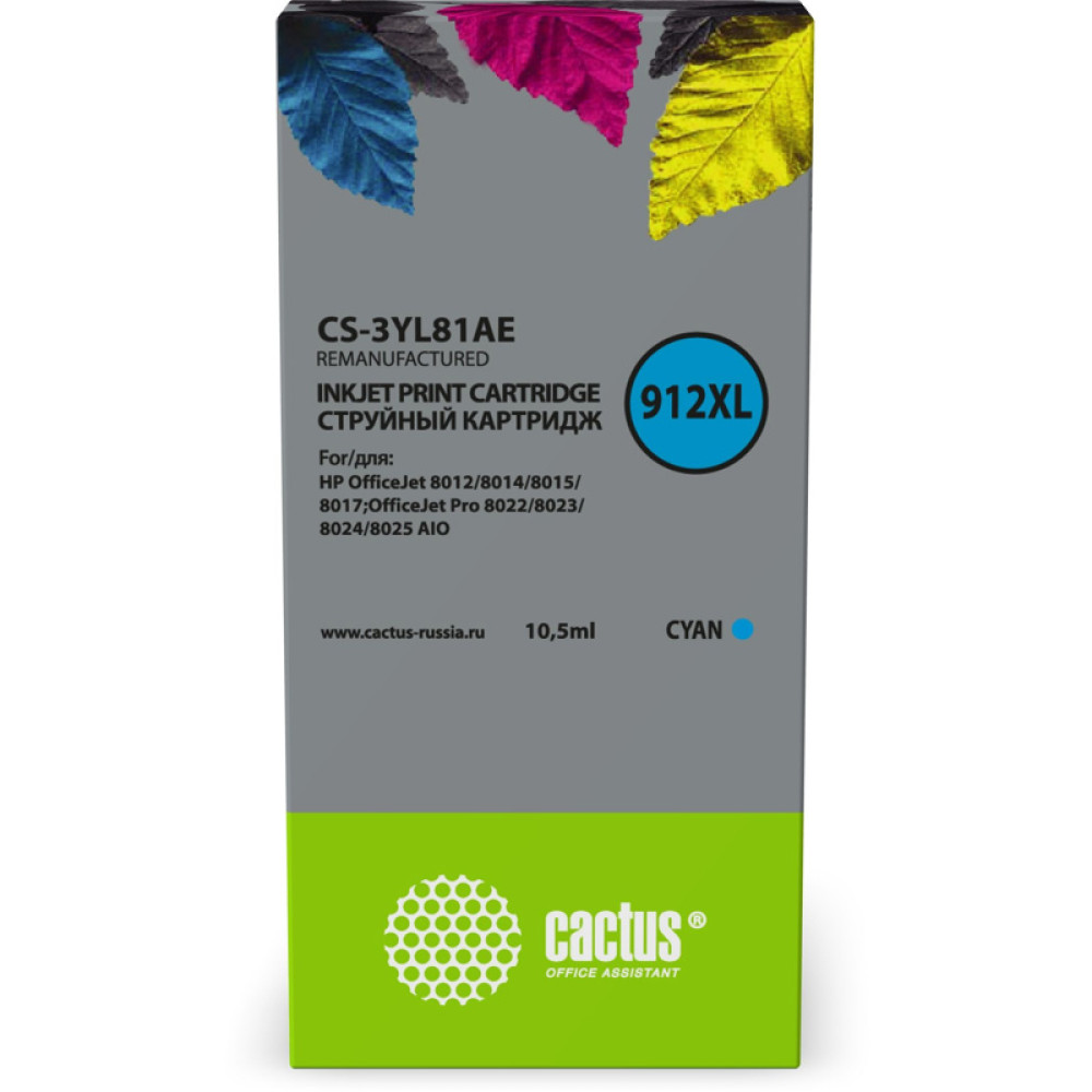 -/ Картридж струйный Cactus CS-3YL81AE 912XL голубой (10.5мл) для HP OfficeJet 8012/8014/8015/8017;Offi