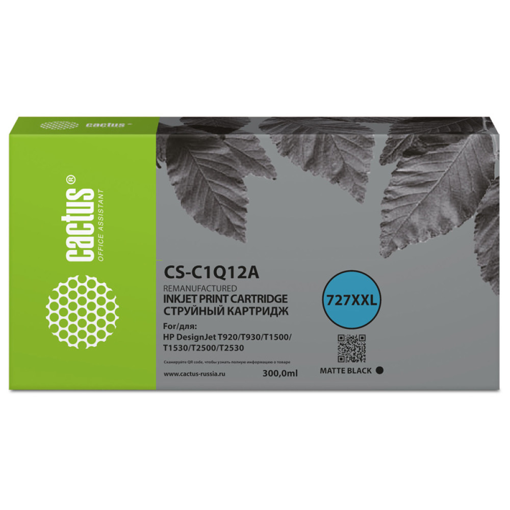 -/ Картридж струйный Cactus CS-C1Q12A №727 черный (300мл) для HP Designjet T920/T930/T1500/T1530