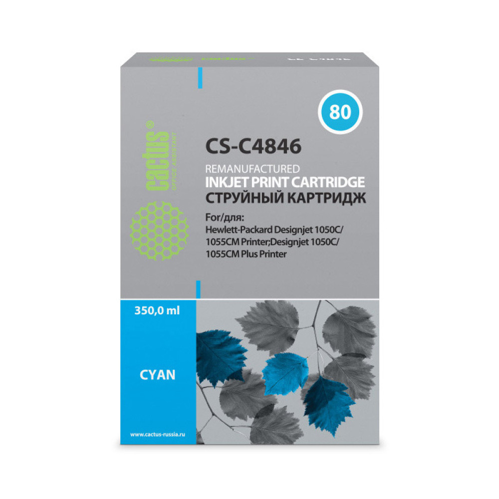 -/ Картридж струйный Cactus CS-C4846 №80 голубой (400мл) для HP DJ 1050C/1055CM/1000