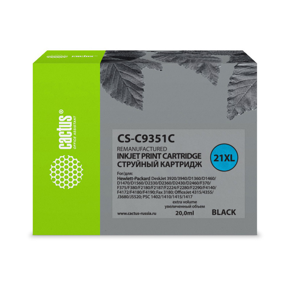 -/ Картридж струйный Cactus CS-C9351C №21XL черный (20мл) для HP DJ 3920/3940/D1360/D1460/D1470/D1560/D