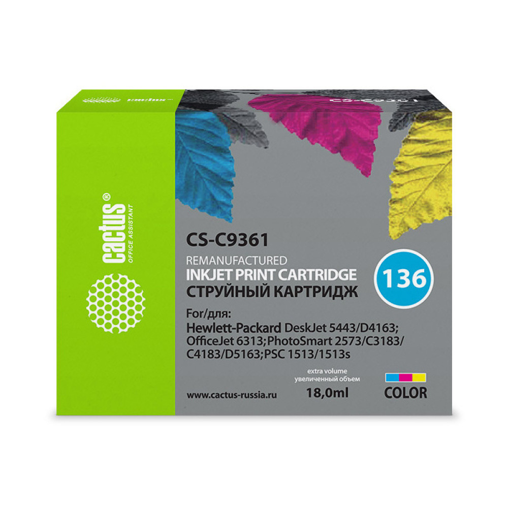 -/ Картридж струйный Cactus CS-C9361 №136 многоцветный (18мл) для HP DJ 5443/D4163/DJ 6313/PS 2573/C318