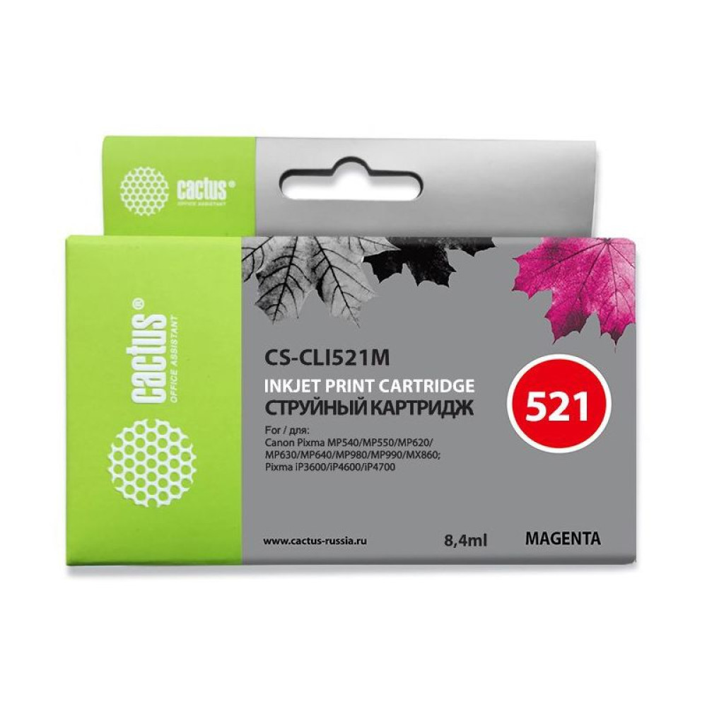 -/ Картридж струйный Cactus CS-CLI521M пурпурный (8.4мл) для Canon Pixma MP540/MP550/MP620/MP630/MP640/