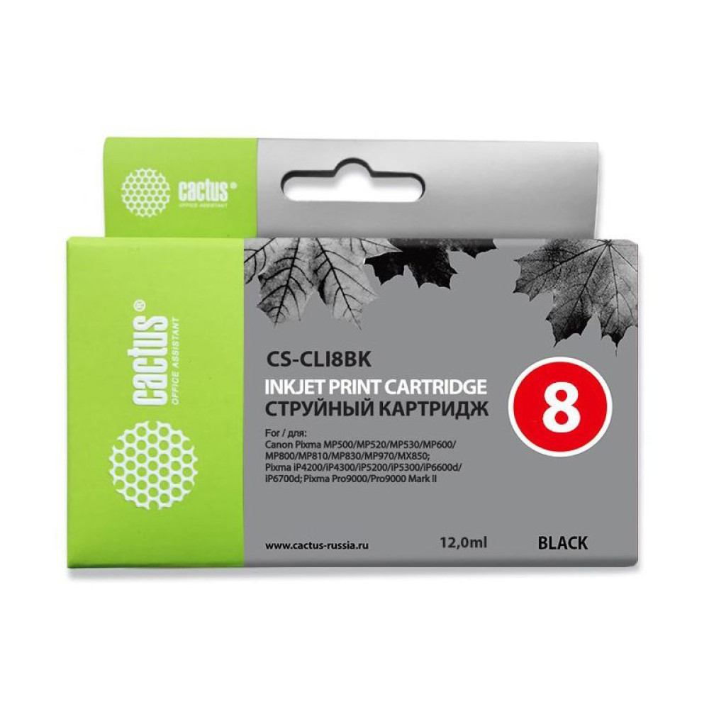-/ Картридж струйный Cactus CS-CLI8BK черный (12мл) для Canon MP470/MP500/MP530/MP600/MP800/MP810/MP830
