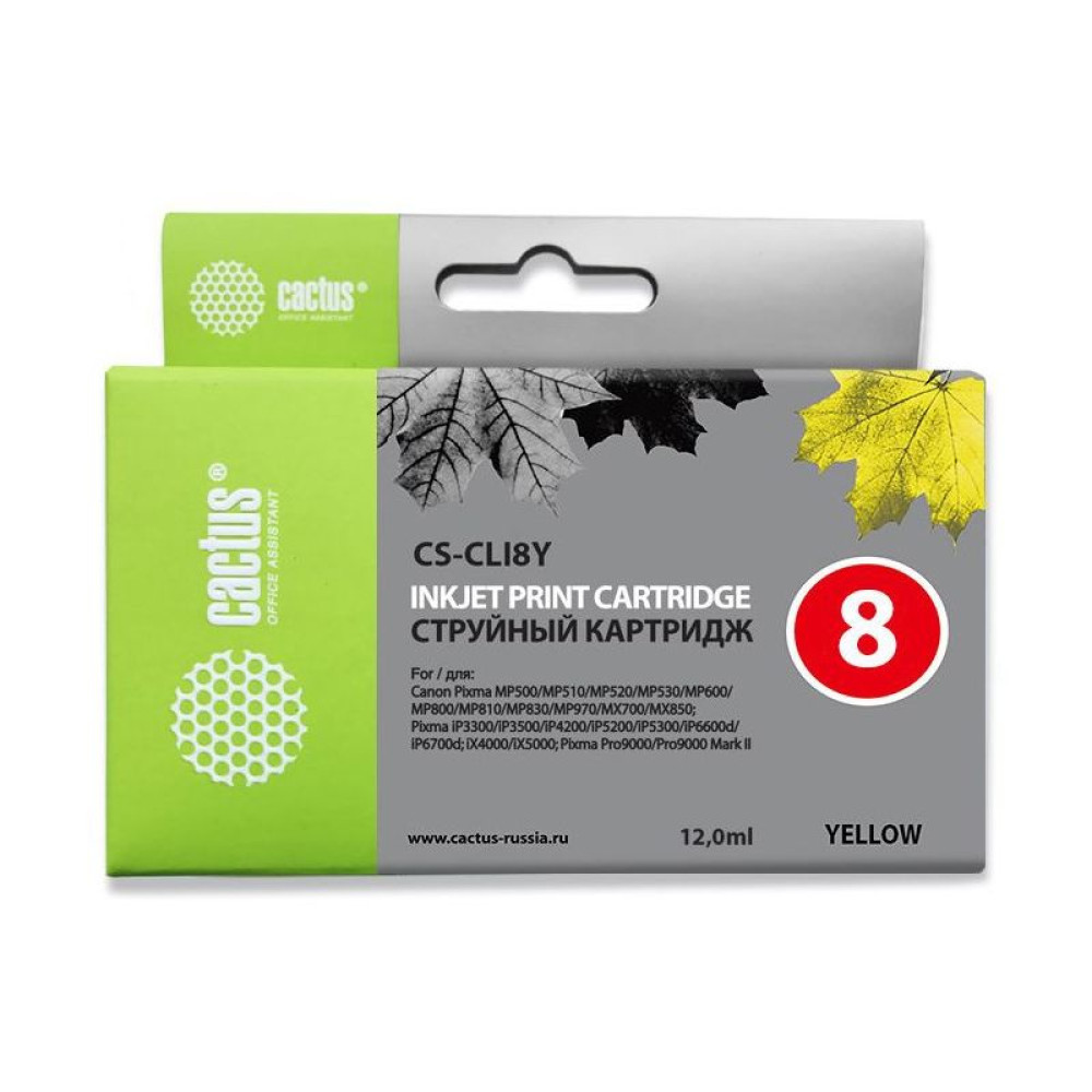 -/ Картридж струйный Cactus CS-CLI8Y желтый (12мл) для Canon Pixma MP470/MP500/MP510/MP520/MP530/MP600/