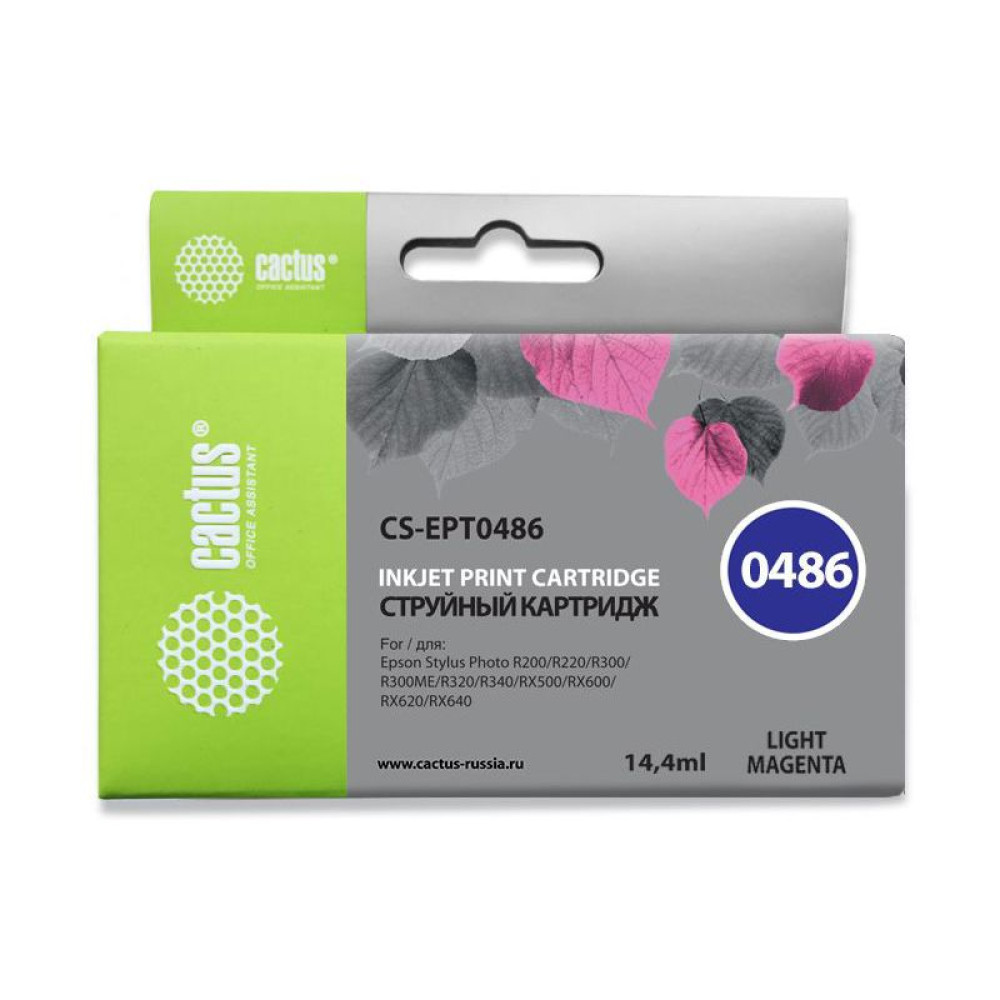 -/ Картридж струйный Cactus CS-EPT0486 T0486 светло-пурпурный (14.4мл) для Epson Stylus Photo R200/R220