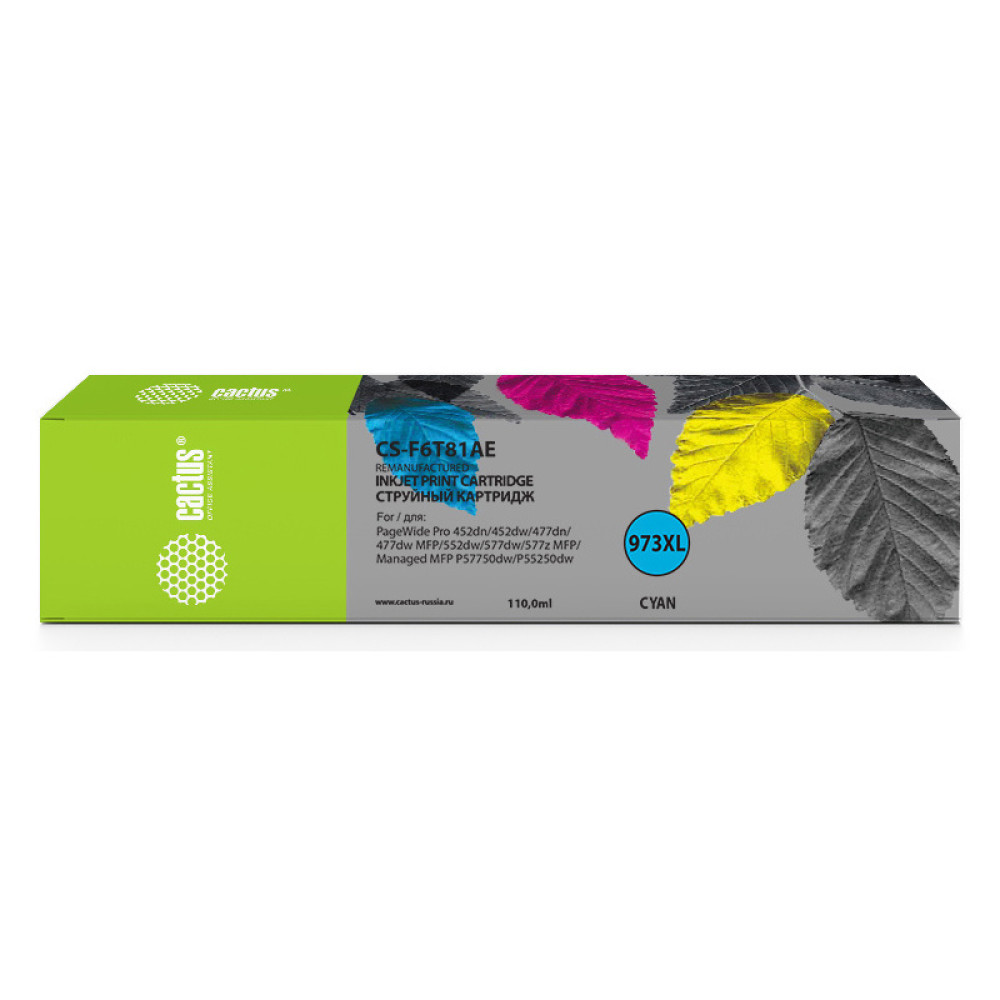 -/ Картридж струйный Cactus CS-F6T81AE 973XL голубой (110мл) для HP HP PageWide Pro 452dw/Pro 477dw