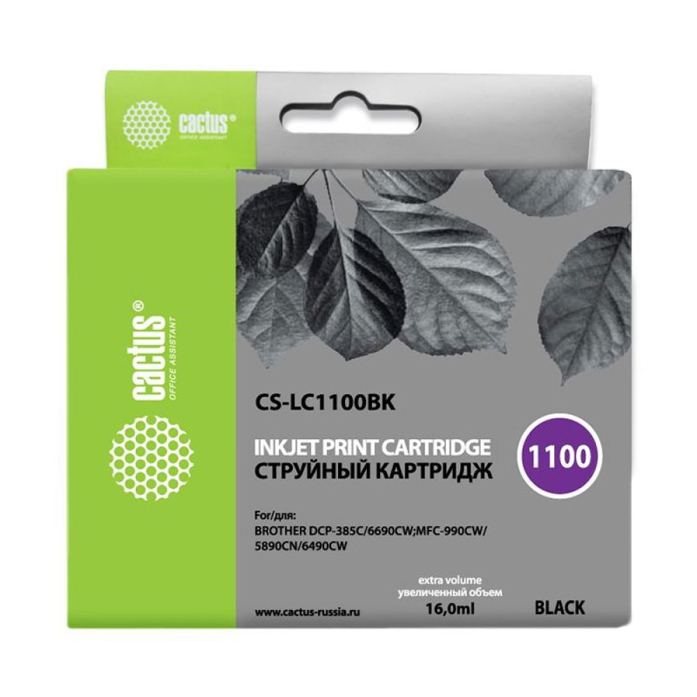 -/ Картридж струйный Cactus CS-LC1100BK черный (16мл) для Brother DCP-385c/6690cw/MFC-990/5890/5895/649