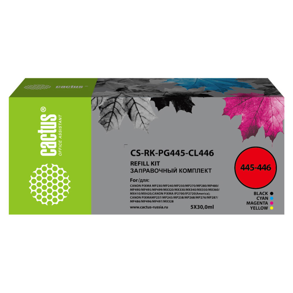 -/ Заправочный набор Cactus CS-RK-PG445-CL446 голубой/пурпурный/желтый/черный набор 5x30мл для Canon Pi