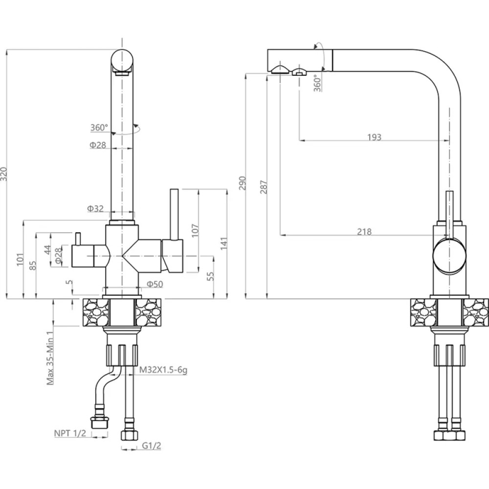 3611 terracotta смеситель для кухни, Г-образный, материал: нержавеющая сталь, поворотный излив, цвет терракот