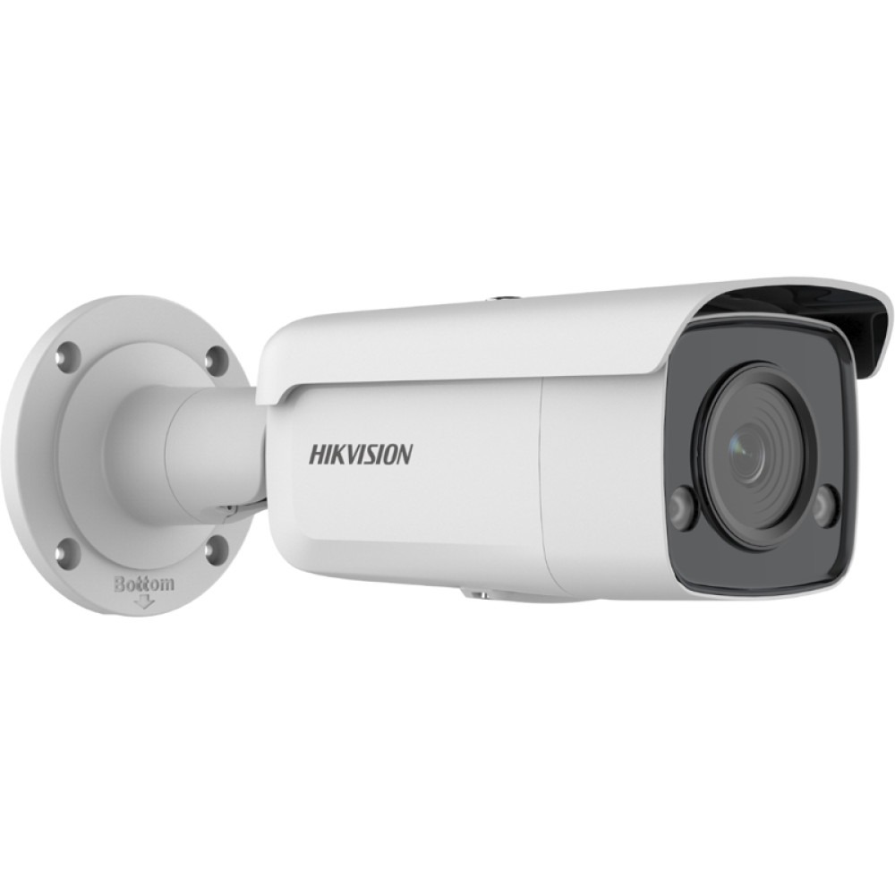 Уличная цилиндрическая IP-камера DS-2CD2T47G2-L(C). Технология Hikvision ColorVu обеспечивает яркие красочные изображения 24/7 с помощью усовершенствованных объективов с апертурой F1.0 и высокопроизводительных матриц. Апертура F1.0 позволяет собирать больше света для получения более ярких изображений. Усовершенствованные матрицы могут значительно улучшить использование доступного света. Особенности: LED-подсветка до 60 метров; цветное изображение в любое время суток; четкое изображение при яркой задней засветке благодаря технологии 130 дБ WDR; Smart-видеоаналитика; защита от влаги и пыли IP67; встроенный слот для microSD/SDHC/SDXC до 256 ГБ.