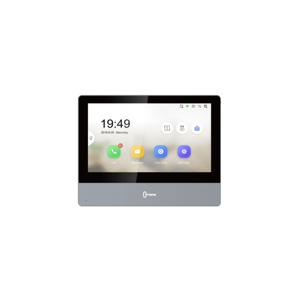 Абонентский монитор Hikvision DS-KH8350-TE1 для IP-видеодомофона оснащен 7" цветным сенсорным LCD IPS-дисплеем с разрешением 1024×600, памятью RAM — 128 Мбайт, ROM — 32 Мбайт. Основан на ОС Linux.