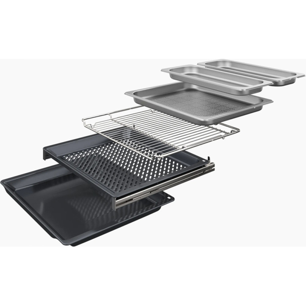 Функция Home Connect позволяет дистанционно управляемая духовым шкафом через смартфон. Термощуп для мяса PerfectRoast замеряет температуру в трех разных точках. Температура выбирается от 30 до 99 градусов, при достижении которой приготовление автоматически завершается. Датчик PerfectBake постоянно измеряет влажность блюда. Автоматические программы регулируют режим нагрева, время и температуру.