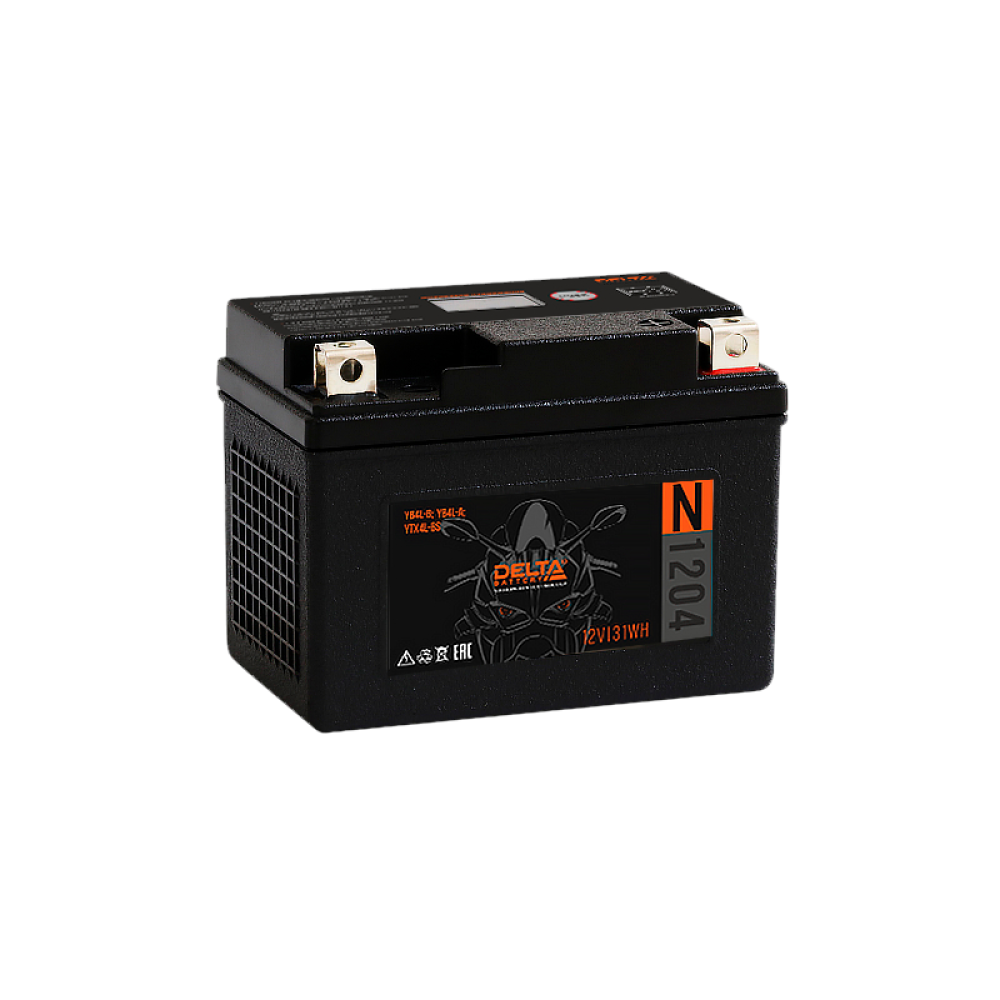Аккумуляторная батарея для мото-техники/ DELTA серия N, DELTA N 1204, напряжение 12В, емкость 2,5 Ач (разряд 10 часов 10.5 В), пусковой ток: 300А, полярность обратная ( - +), тип NaIon (натрий-ионный), клеммы: BN под болт, ДxШxВ 114x70x87мм., вес 0,47