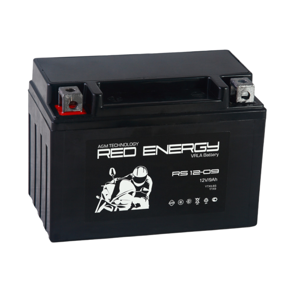 Аккумуляторная батарея для мото-техники/ DELTA серия RS, RS 1209, напряжение 12В, емкость 9 Ач (разряд 10 часов 10.5 В), пусковой ток: 144А, полярность обратная ( - +), тип AGM;Pb (свинцово-кислотный), клеммы: BN под болт, ДxШxВ 150x86x107мм., вес 2,8