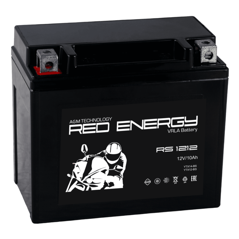 Аккумуляторная батарея для мото-техники/ DELTA серия RS, RS 1212, напряжение 12В, емкость 10 Ач (разряд 10 часов 10.5 В), пусковой ток: 144А, полярность обратная ( - +), тип AGM;Pb (свинцово-кислотный), клеммы: BN под болт, ДxШxВ 150x86x131мм., вес 3,