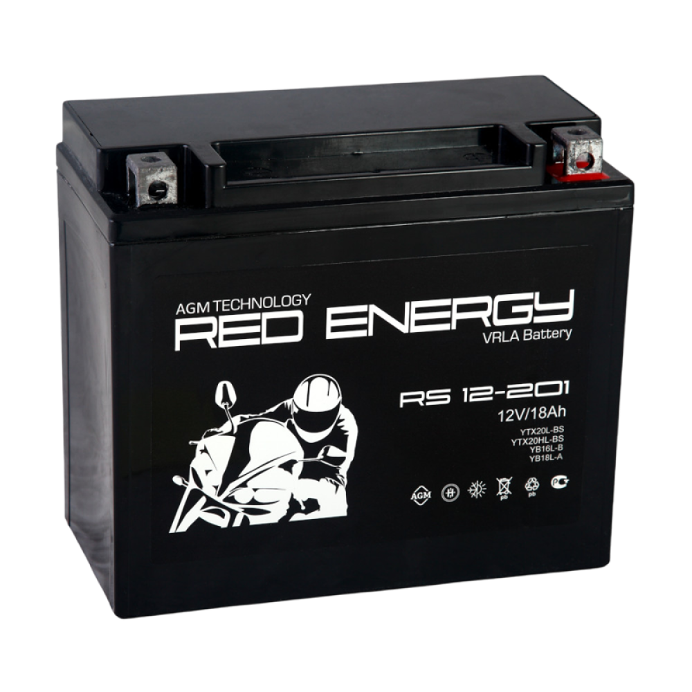 Аккумуляторная батарея для мото-техники/ DELTA серия RS, RS 12201, напряжение 12В, емкость 18 Ач (разряд 10 часов 10.5 В), пусковой ток: 144А, полярность обратная ( - +), тип AGM;Pb (свинцово-кислотный), клеммы: BN под болт, ДxШxВ 177x88x154мм., вес 5