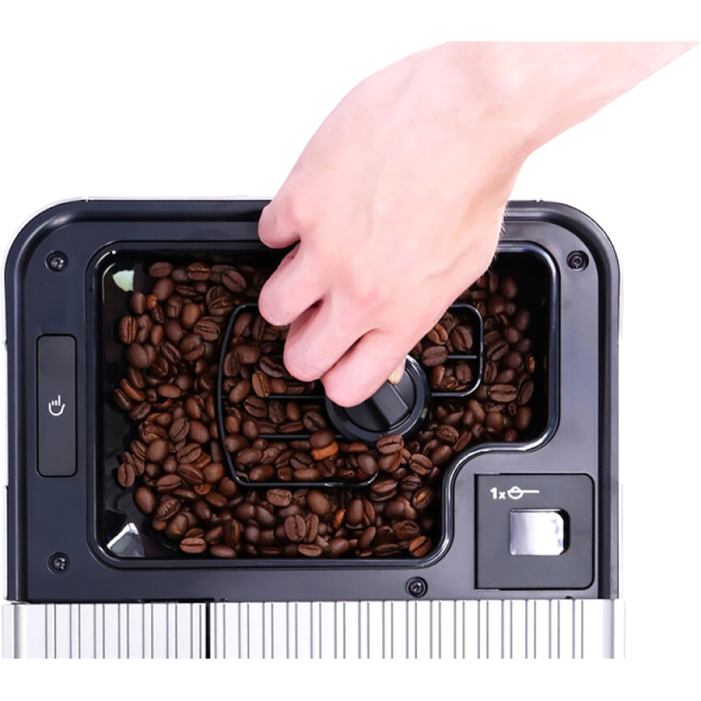 Машина предлагает более 40 запрограммированных рецептов — от классического эспрессо до авторских молочных напитков на его основе. Встроенная кофемолка с семью степенями помола автоматически подбирает оптимальные параметры для каждого напитка. Управление производится при помощи сенсорного дисплея — меню наглядно отображается цветными картинками. Функция Auto Purge автоматически очищает жернова перед каждым помолом, гарантируя чистоту вкуса без остаточных примесей. Объемный резервуар для воды на 2,2 литра и контейнер для зерен на 270 грамм обеспечивают возможность приготовления нескольких порций без перерыва.
