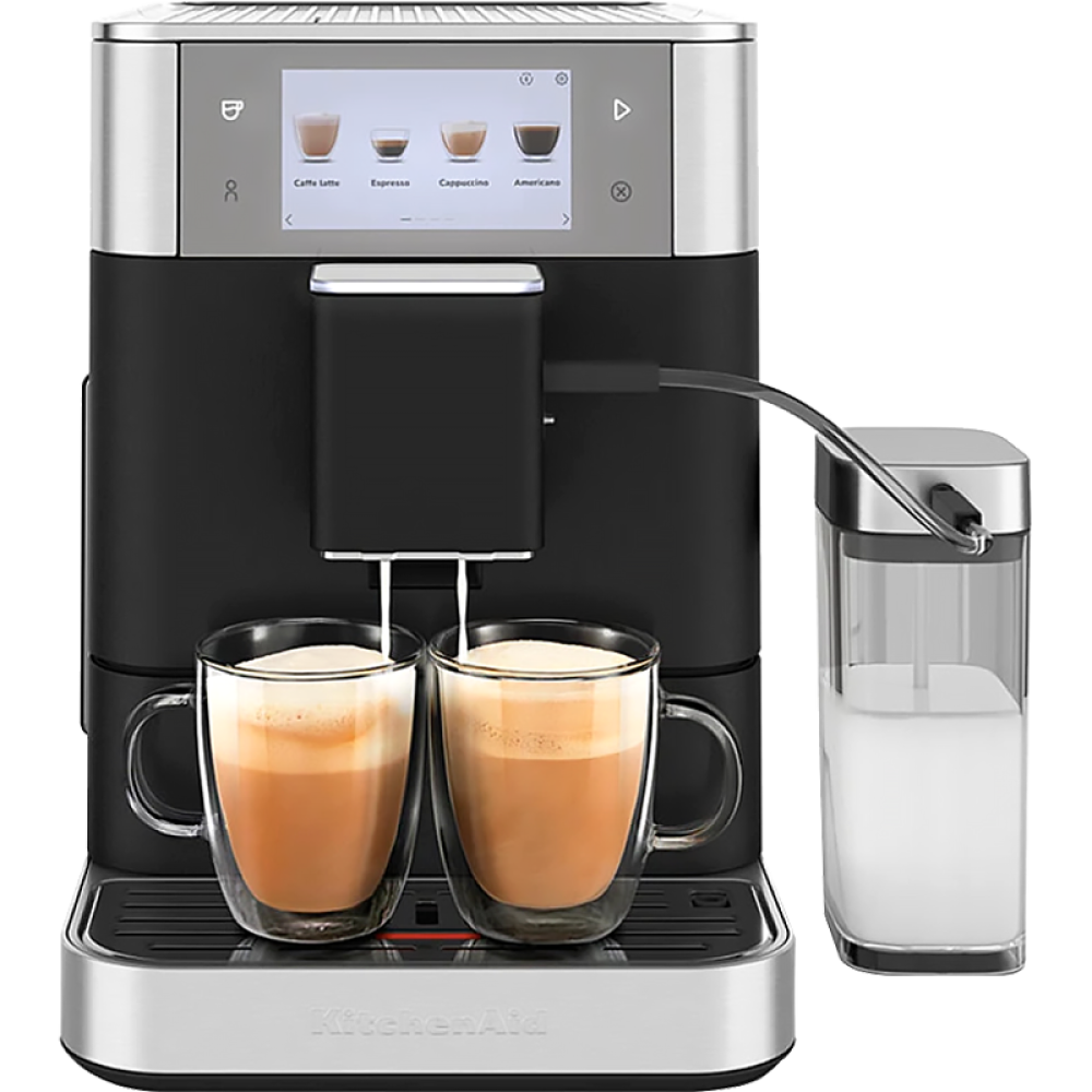 Автоматическая эспрессо-машина KitchenAid, 2.2 л, одновременное приготовление двух чашек, 3 уровня крепости кофе, автоматическая очистка, автоматическая декальцинация, цветной дисплей, сенсорное управление, 40 рецептов, цвет чугун