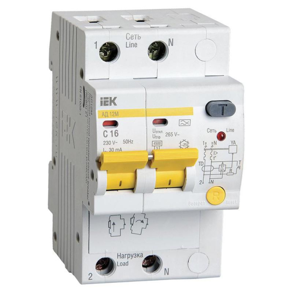 Автоматический выключатель IEK MAD12-2-016-C-030 АД12М 16A тип C 4.5kA 30мА A 2П 230В 3мод белый (упак.:1шт)