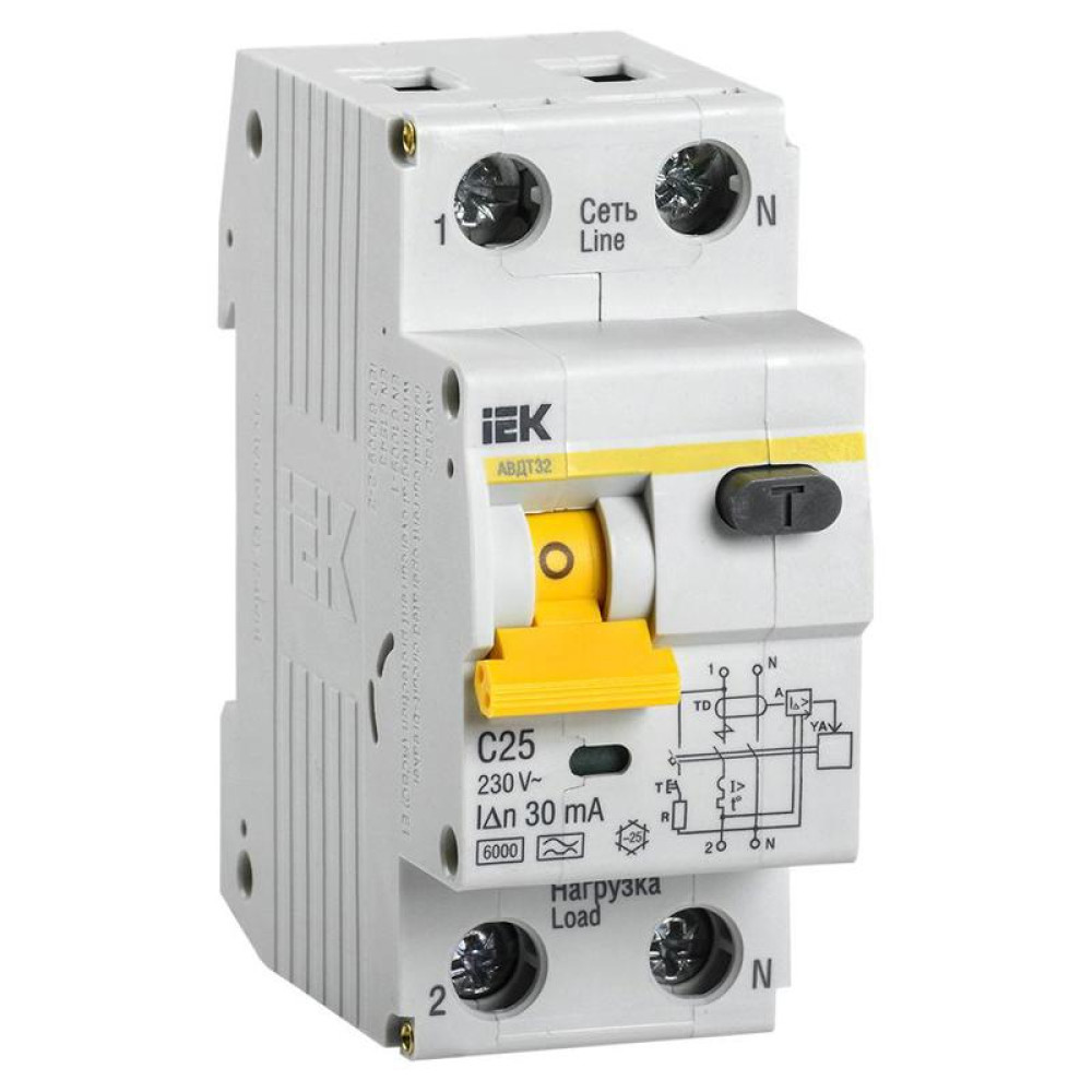 Автоматический выключатель IEK MAD22-5-025-C-30 АВДТ 32 25A тип C 6kA 30мА A 1П+Н 230В 2мод белый (упак.:1шт)