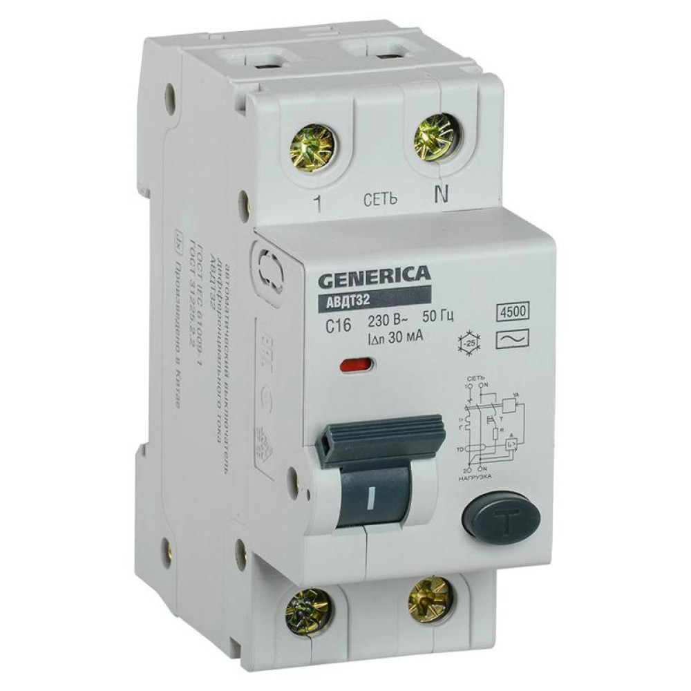 Автоматический выключатель IEK MAD25-5-016-C-30 АВДТ 32 Generica 16A тип C 6kA 30мА AC 2П 230В 2мод серый (упак.:1шт)