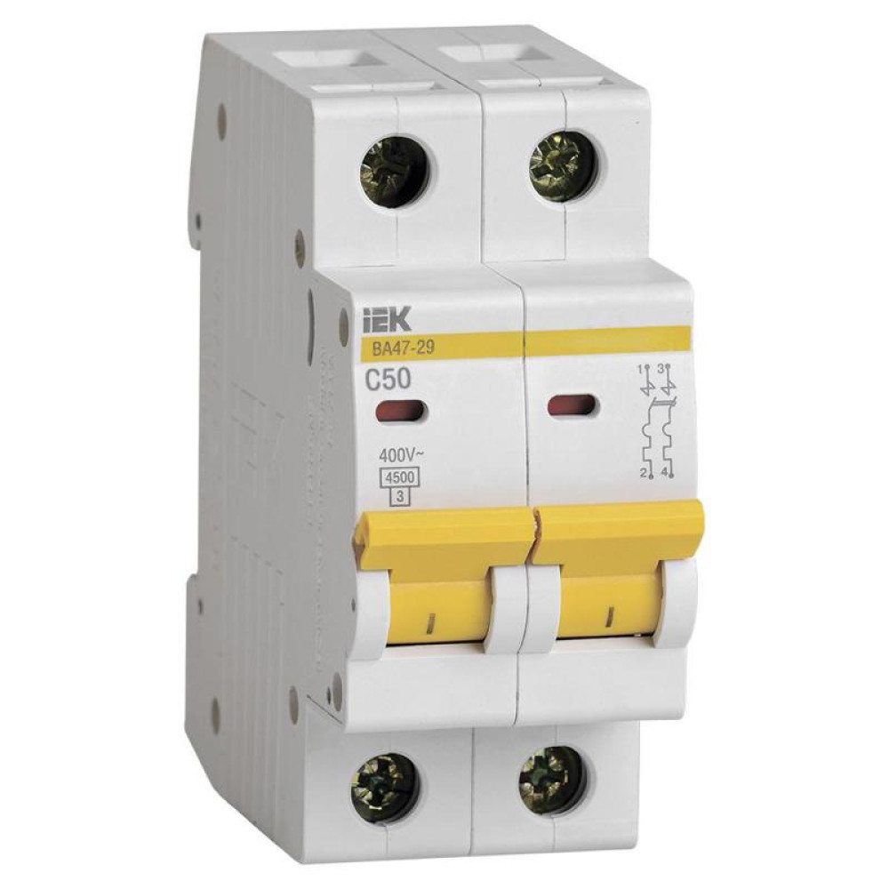 Автоматический выключатель IEK MVA20-2-050-C ВА47-29 50A тип C 4.5kA 2П 400В 2мод белый (упак.:1шт)