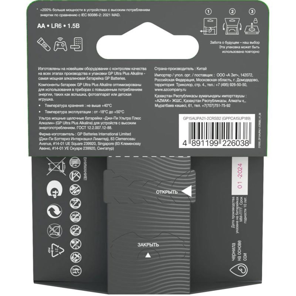 Батарея GP Ultra Plus Alkaline 15AUPA21-2CRSB2 AA (2шт) блистер