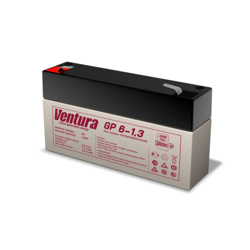 Батарея Ventura серия GP, GP12-1.3, напряжение 12B, емкость 1.3Ач (разряд 20 часов), макс. ток заряда 0.39А, свинцово-кислотная типа AGM, клеммы T1, ДШВ 97х43х58мм, вес 0.6кг/ Ventura battery series GP, GP12-1.3, voltage 12V, capacity 1.3Ah (discharg