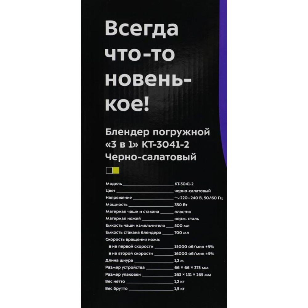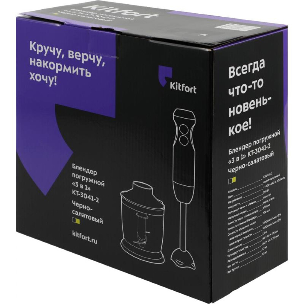 Блендер погружной Kitfort КТ-3041-2 350Вт черный/салатовый