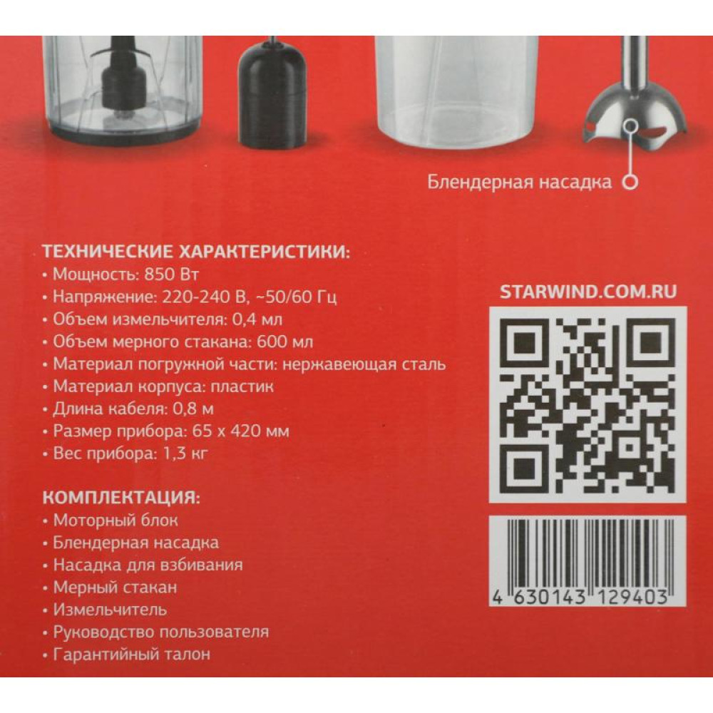 Блендер погружной Starwind SBP2200 850Вт черный/серебристый