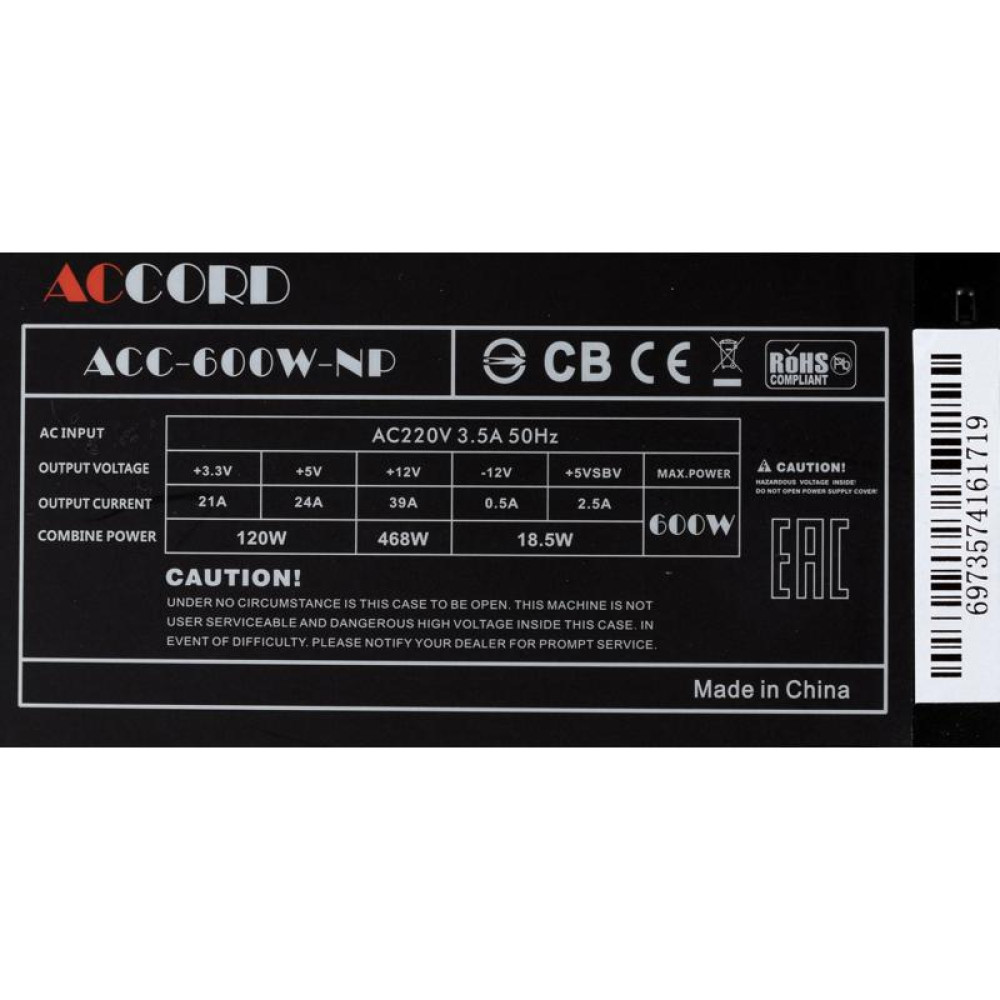 Блок питания Accord ATX 600W ACC-600W-NP (20+4pin) 120mm fan 4xSATA [ACC-600-NP]