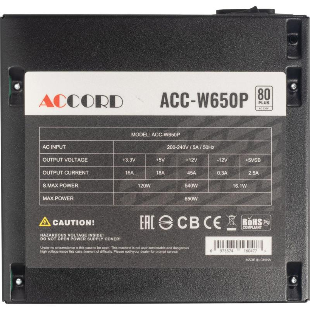 Блок питания Accord ATX 650W ACC-W650P 80 PLUS WHITE (20+4pin) 120mm fan 6xSATA RTL [ACC-W650P]