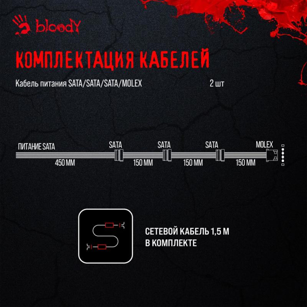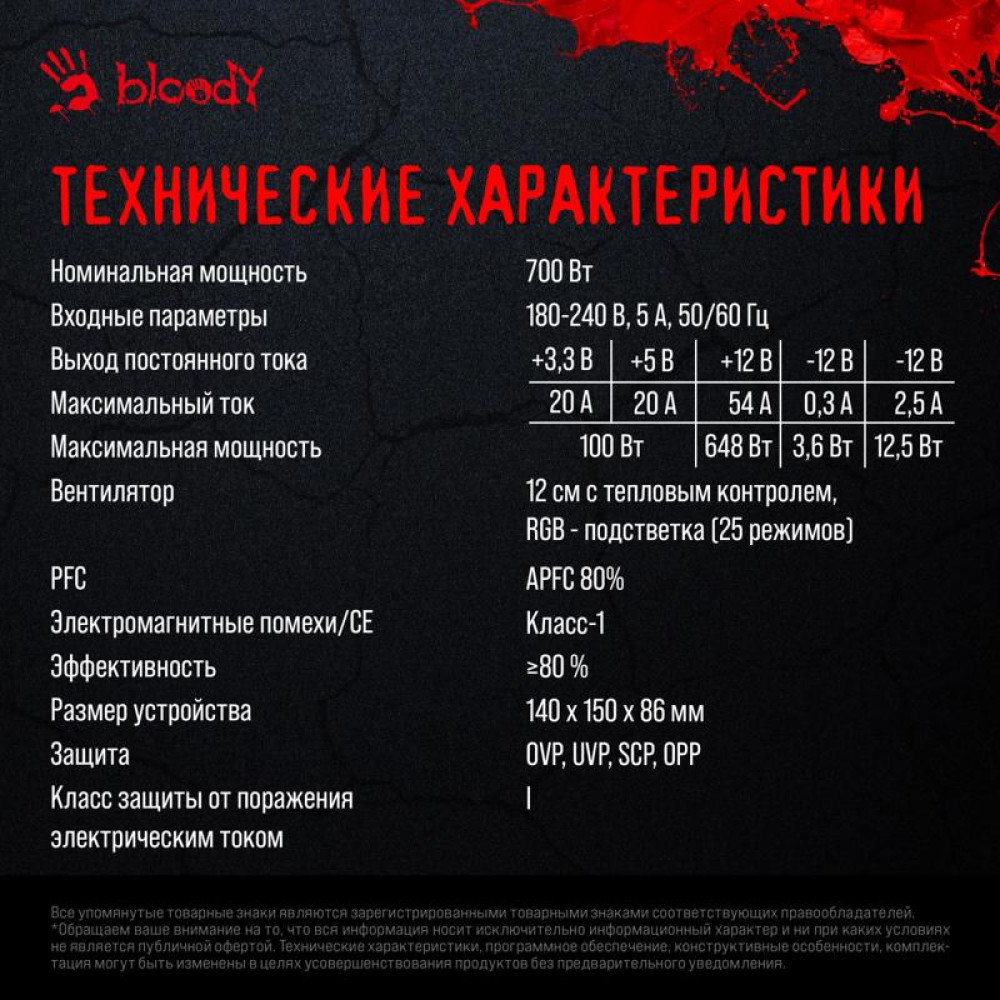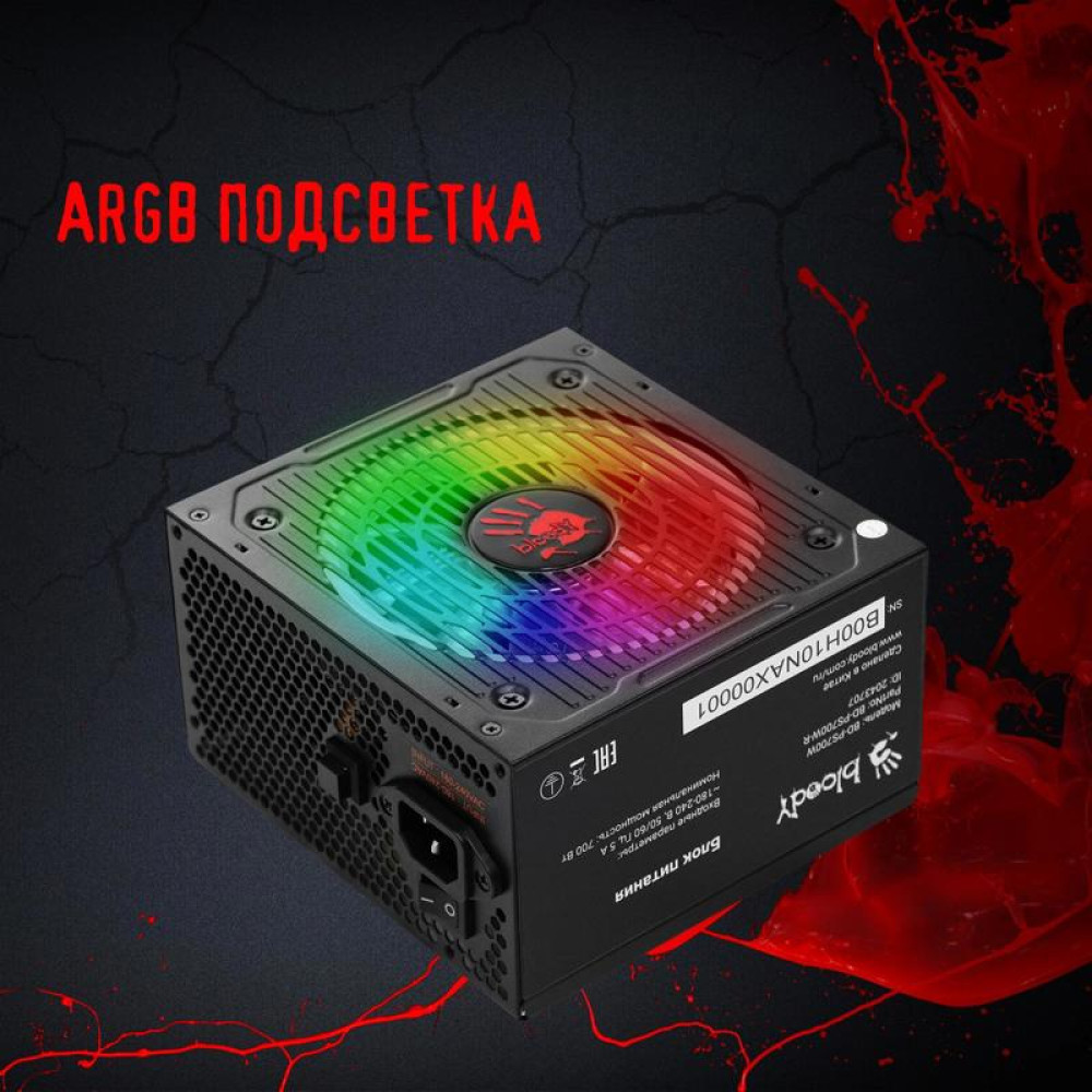 Блок питания Bloody ATX 700W BD-PS700W 80 PLUS WHITE (20+4pin) APFC 120mm fan color LED 6xSATA RTL [BD-PS700W-R]