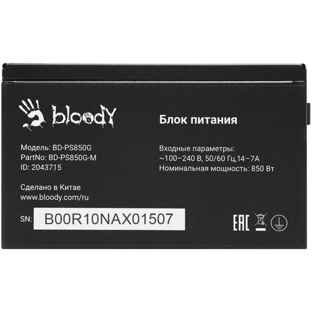 Блок питания Bloody ATX 850W BD-PS850G 80+ gold (20+4pin) APFC 120mm fan 12xSATA Cab Manag RTL [BD-PS850G-M]