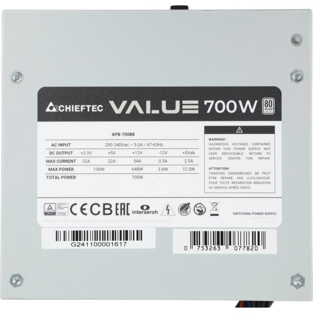 Блок питания Chieftec ATX 700W VALUE APB-700B8 80+ 24pin APFC 120mm fan 4xSATA [APB-700B8]