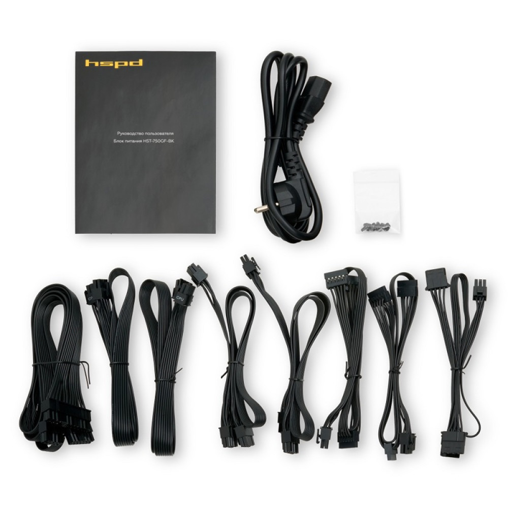 Блок питания/ Power Supply HSPD, 750W 80+ Gold (ATX, 2.52, Full modular, 1x24(20+4)pin 600mm, 2xCPU 8(4+4)pin 700mm, 2xPCIe*2 8(6+2)pin 600+150mm, 2xSATA*3 500+150+150mm, 1xMOLEX*3 500+150+150mm , Active, 120x120mm, 150x140x86mm, APFC, OVP, OPP, SCP, UVP,