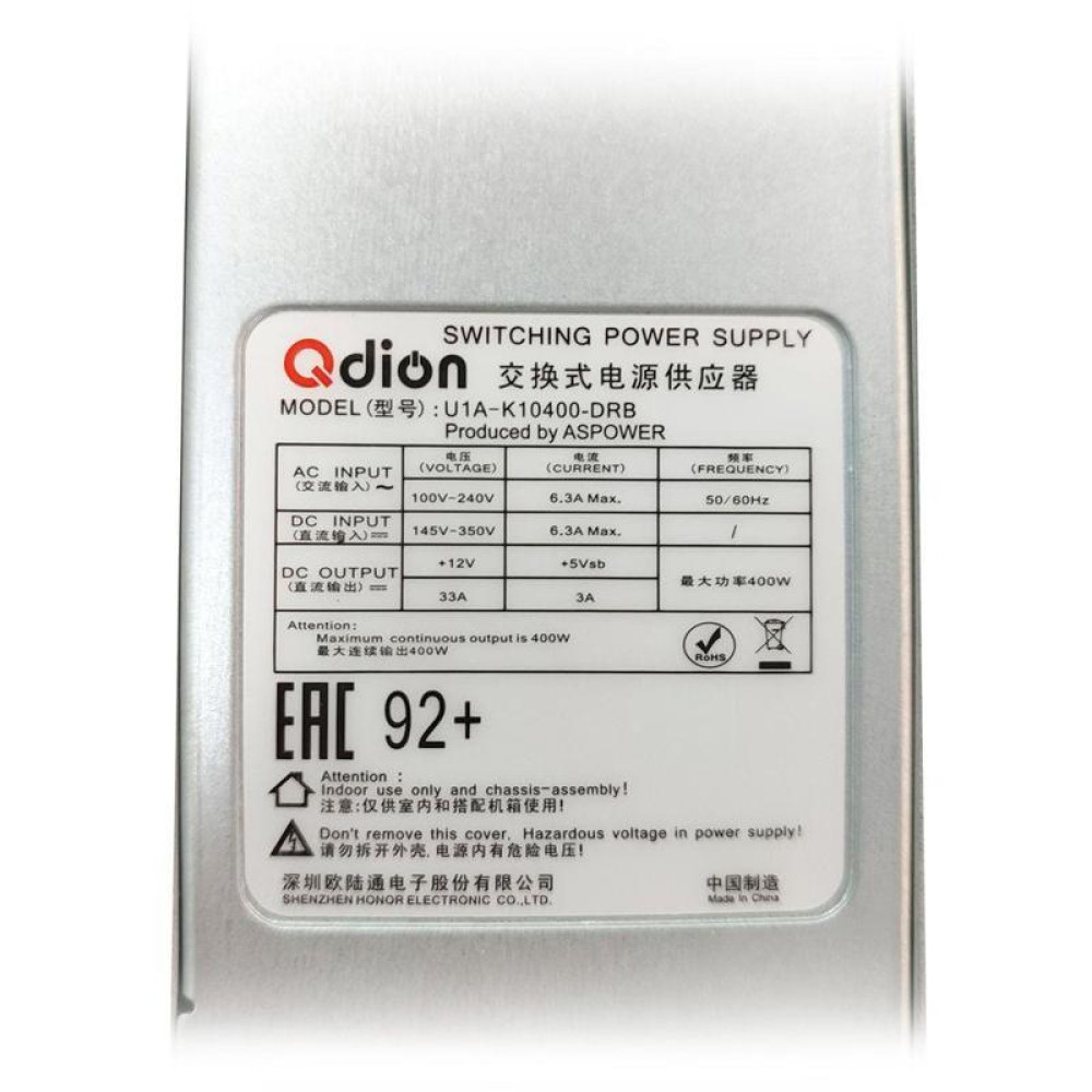 Блок питания Qdion U1A-K10400-DRB 1U Slim 400W (ШВГ=50.5*40*196mm), 80+ Golg, Oper.temp 0C;50C, AC/DC dual input (ASPower) OEM