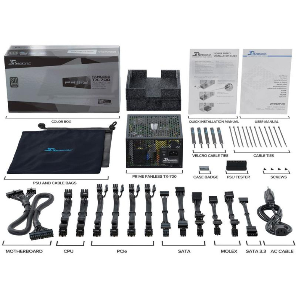 Блок питания Seasonic ATX 700W PRIME Fanless TX-700 80+ titanium 24pin APFC 10xSATA Cab Manag RTL [SSR-700TL]