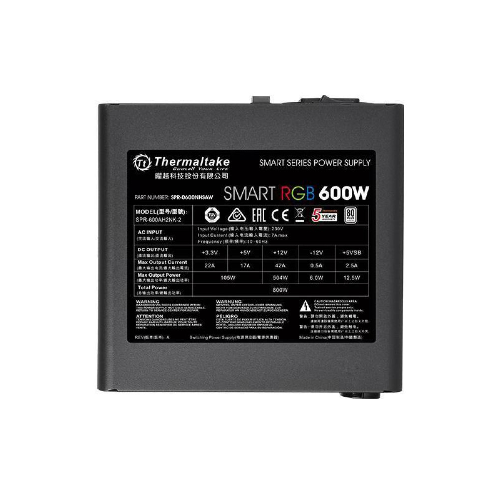 Блок питания Thermaltake ATX 600W Smart RGB 600 80+ (20+4pin) APFC 120mm fan color LED 6xSATA RTL [PS-SPR-0600NHSAWE-1]