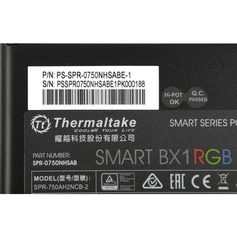 Блок питания Thermaltake ATX 750W Smart BX1 RGB 80+ bronze (20+4pin) APFC 120mm fan color LED 8xSATA RTL [PS-SPR-0750NHSABE-1]