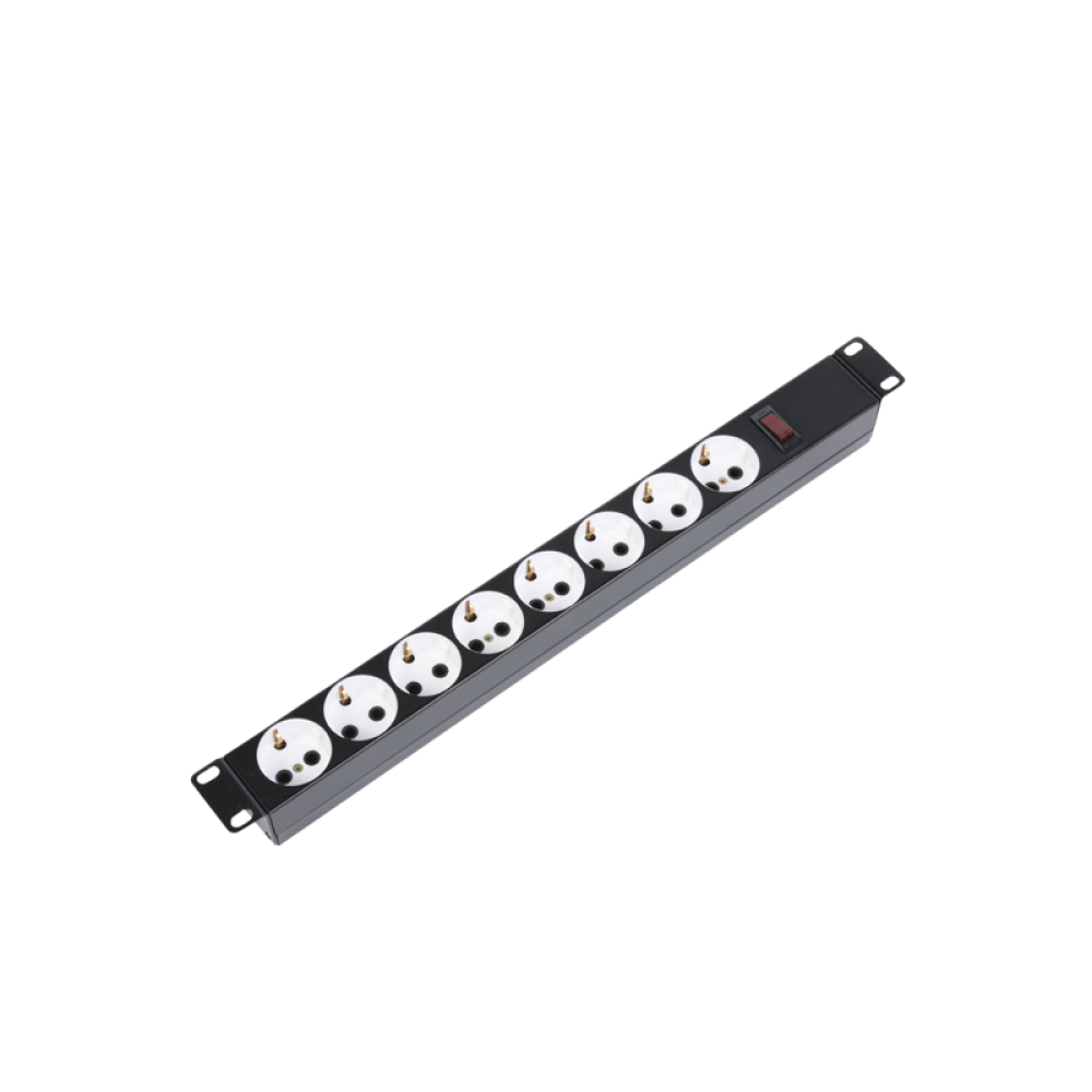 Блок силовых розеток 10А без шнура 19" с выключателем, 8 розеток, цвет черный