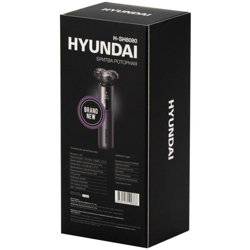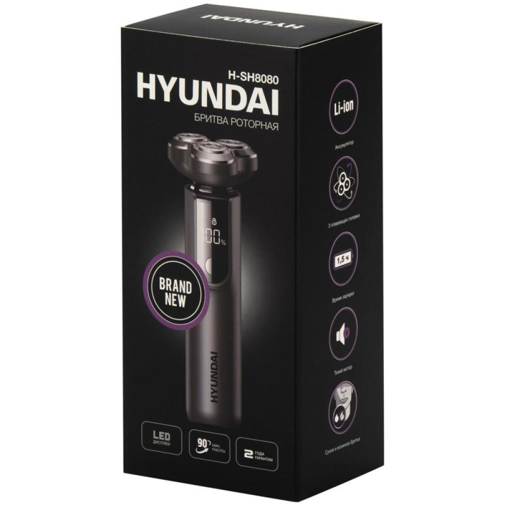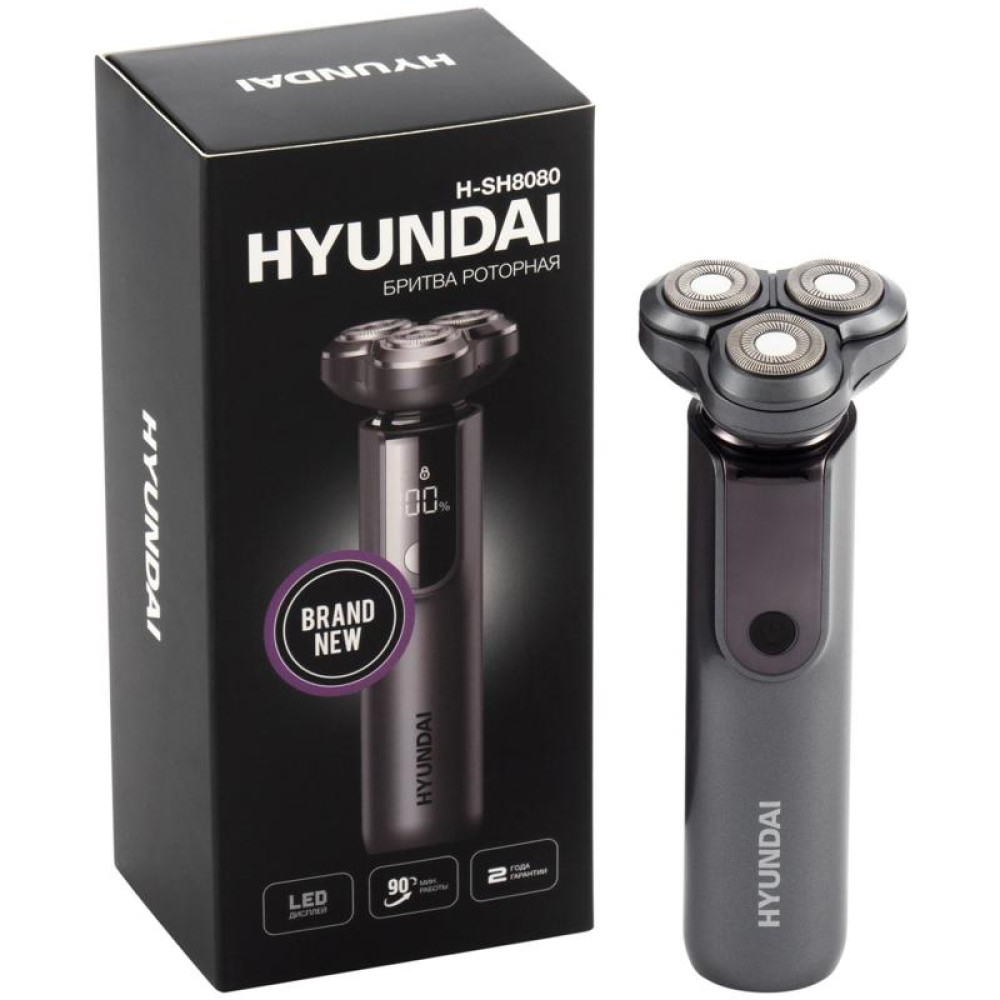 Бритва роторная/ Бритва роторная Hyundai H-SH8080 реж.эл.:3 питан.:аккум. серебристый