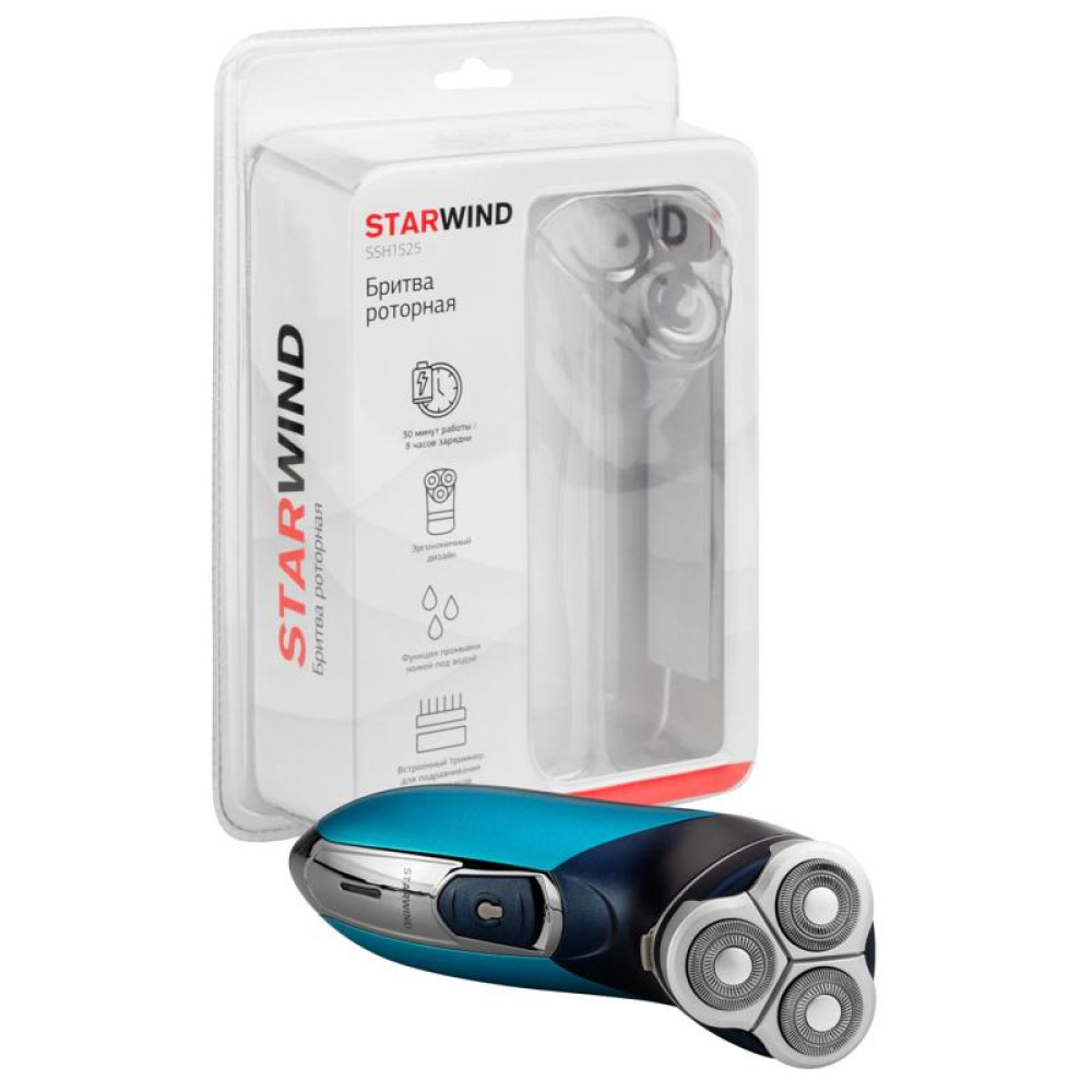 Бритва роторная/ Бритва роторная Starwind SSH 1525 реж.эл.:3 питан.:аккум. голубой/черный