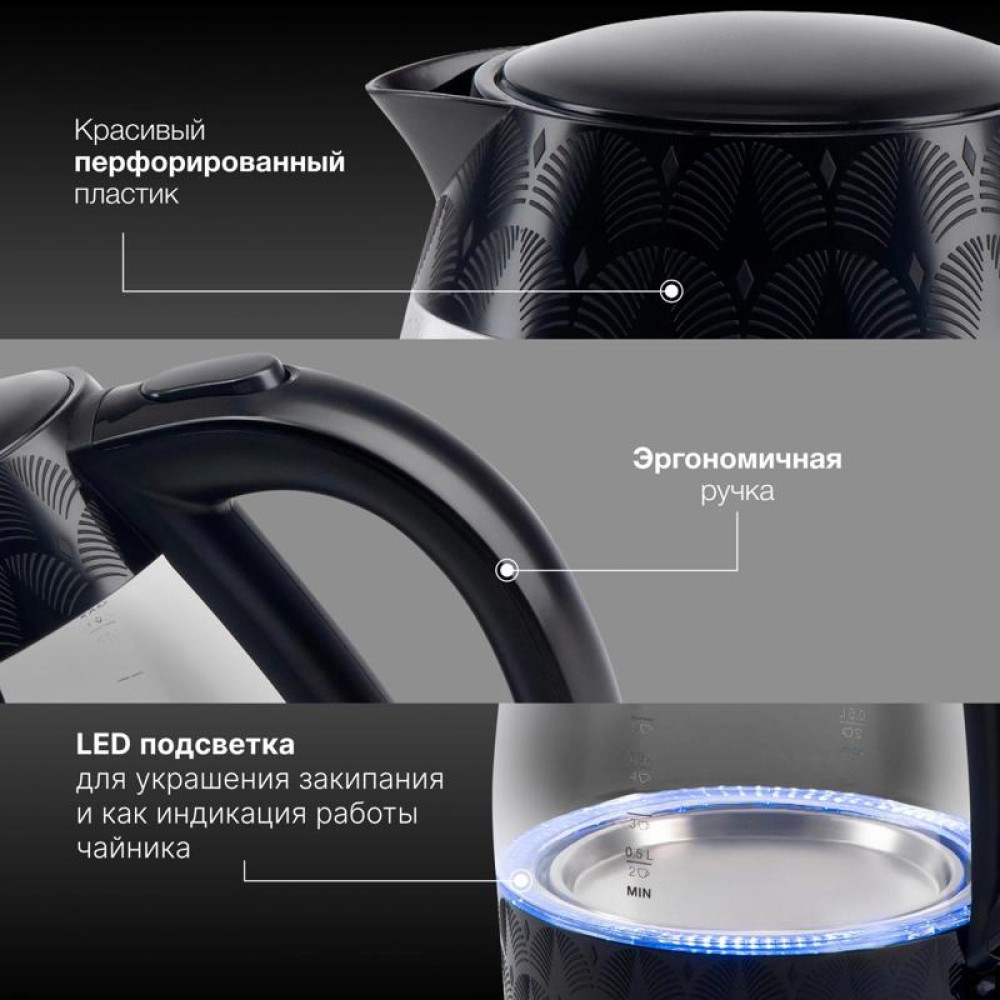 Чайник электрический Hyundai HYK-G4505 2л. 2200Вт черный корпус: стекло/пластик
